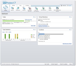 With an intuitive web-based interface, Acronis vmProtect efficiently integrates with VMware vCenter, allowing administrators to use one console to manage all their tasks. With advanced replication capability with failover and failback, and the ability to run a virtual machine directly from its backup, it dramatically improves the times to recover. Even in the event of total server failure, bare metal recovery (BMR) allows an entire machine to be recovered to dissimilar hardware, significantly reducing downtime.