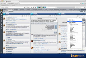 By accessing Yammer inside HootSuite's dashboard, users can view and engage with conversations from across their Yammer network. In addition, employees can post new updates, add attachments and search for content across their Yammer networks from one streamlined interface, saving time and keeping employees focused on engagement. For example, when a community manager notices a customer tweet that requires an immediate response, she can post to her company's Yammer feed to gather feedback and promptly respond to the customer without leaving the HootSuite dashboard.