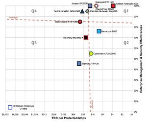 The SVM depicts the value of ten firewall devices and the appropriate central management functions for each vendor.