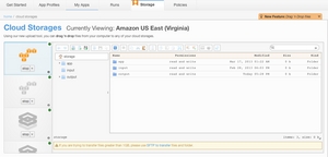 Storage Management: CloudCenter 2.0 enables the user to be able to move data to, and sync between, clouds using the "drag and drop" functionality. The intuitive user interface allows for easy file transfer and folder management, improving the overall experience of data migration and portability among clouds. Users will also continue to have the option to use SFTP to securely transfer files to the cloud.